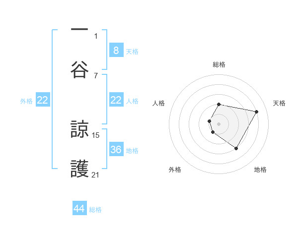 一谷 諒護さんの総格は44画の2点!