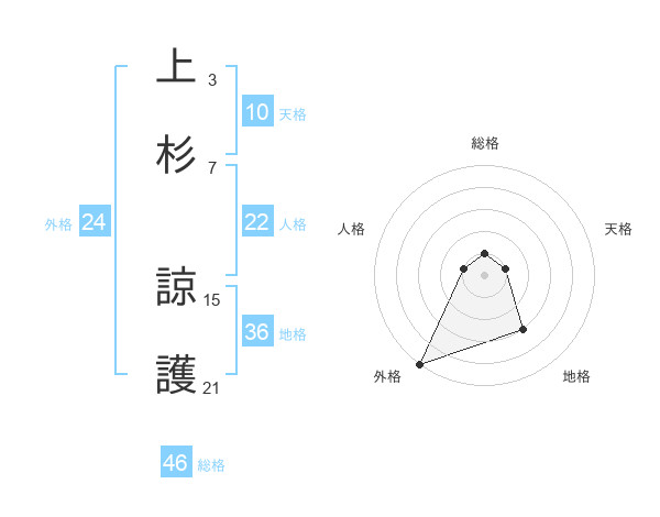 上杉 諒護さんを姓名の画数から五運を鑑定