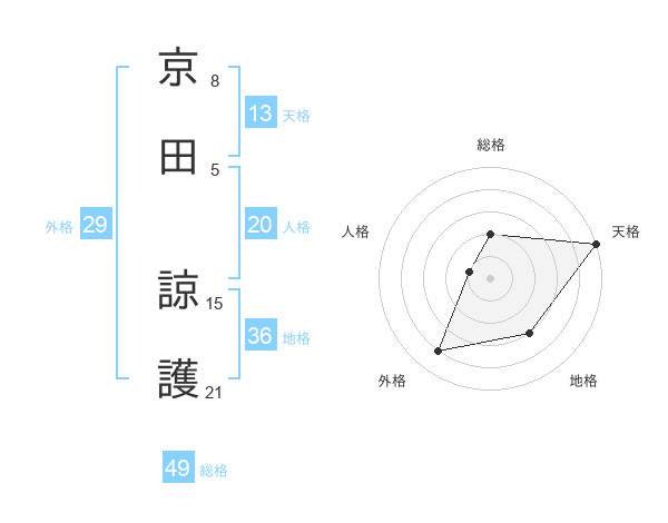 京田 諒護さんの天格は13画の5点!