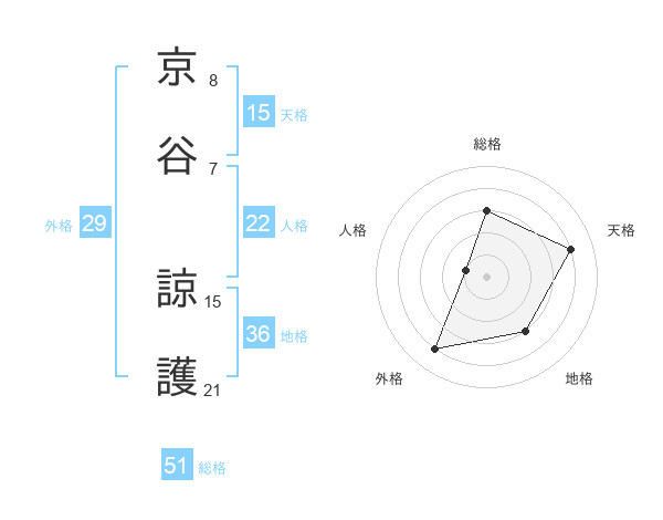 京谷 諒護さんを姓名の画数から五運を鑑定