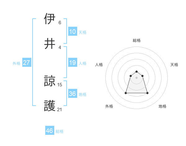 伊井 諒護さんの総格は46画の1点!