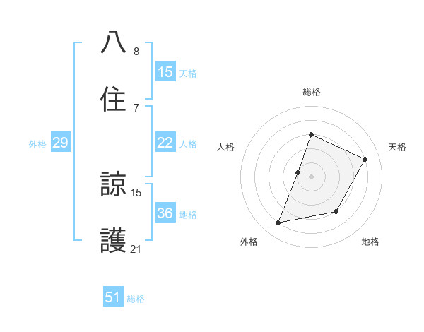 八住 諒護さんの総格は51画の3点!