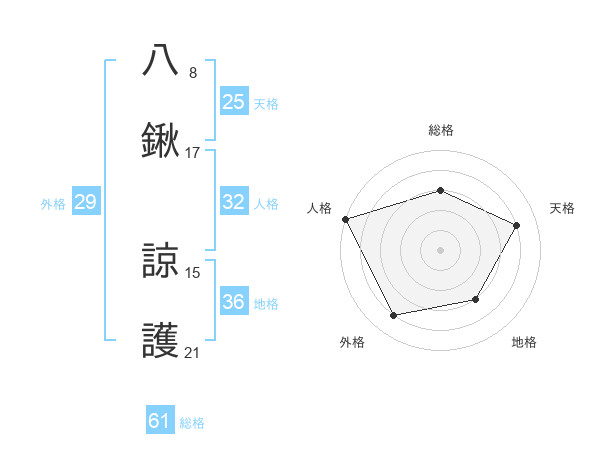 八鍬 諒護さんの天格は25画の4点!