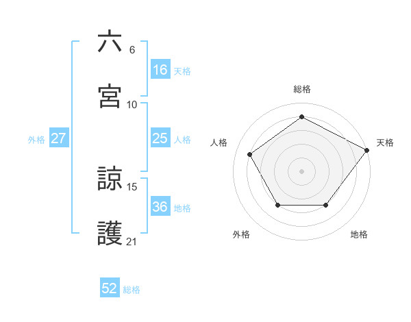 六宮 諒護さんを姓名の画数から五運を鑑定