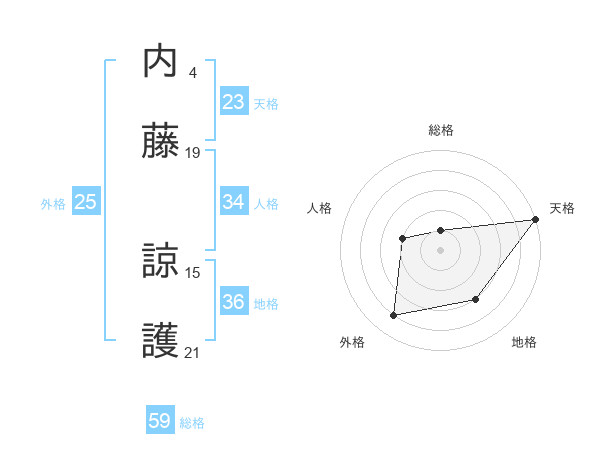 内藤 諒護さんの総格は59画の1点!
