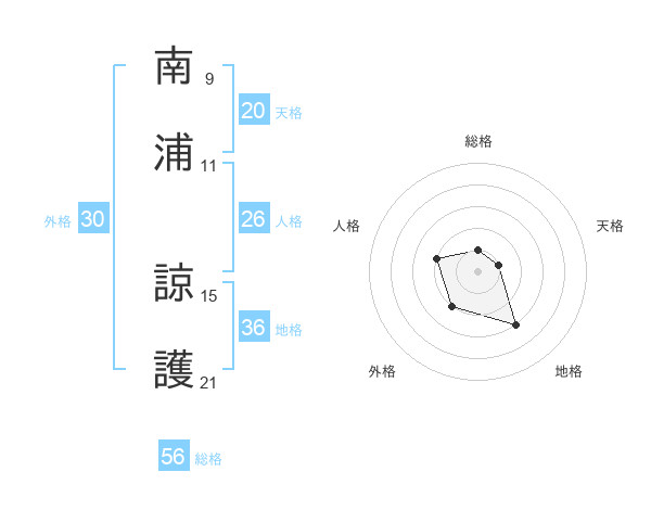 南浦 諒護さんの総格は56画の1点!