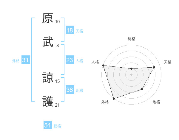 原武 諒護さんの総格は54画の1点!