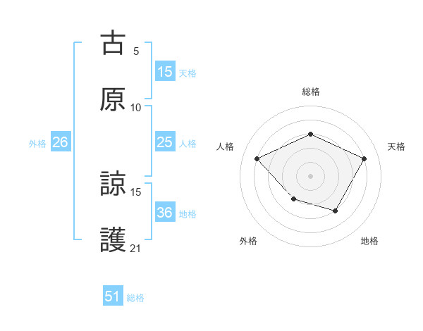 古原 諒護さんの総格は51画の3点!