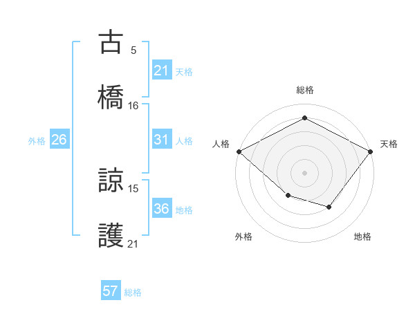 古橋 諒護さんを姓名の画数から五運を鑑定