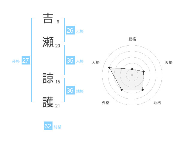 吉瀬 諒護さんを姓名の画数から五運を鑑定