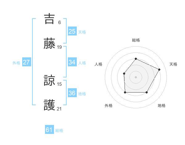 吉藤 諒護さんの総格は61画の3点!