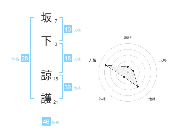 坂下 諒護さんの総格は46画の1点!