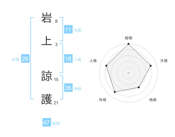 岩上 諒護さんの総格は47画の5点!