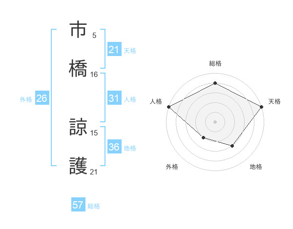 市橋 諒護さんの総格は57画の4点!