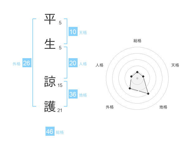 平生 諒護さんの総格は46画の1点!