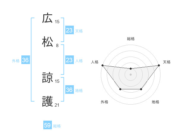 広松 諒護さんの天格は23画の5点!