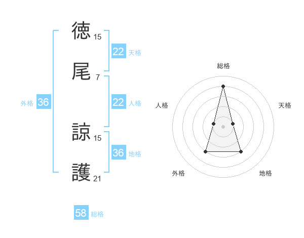 徳尾 諒護さんの総格は58画の4点!