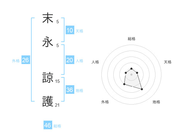 末永 諒護さんの総格は46画の1点!