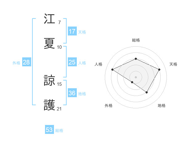 江夏 諒護さんを姓名の画数から五運を鑑定