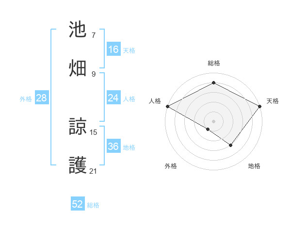 池畑 諒護さんを姓名の画数から五運を鑑定