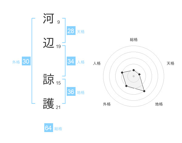 河辺 諒護さんの総格は64画の1点!