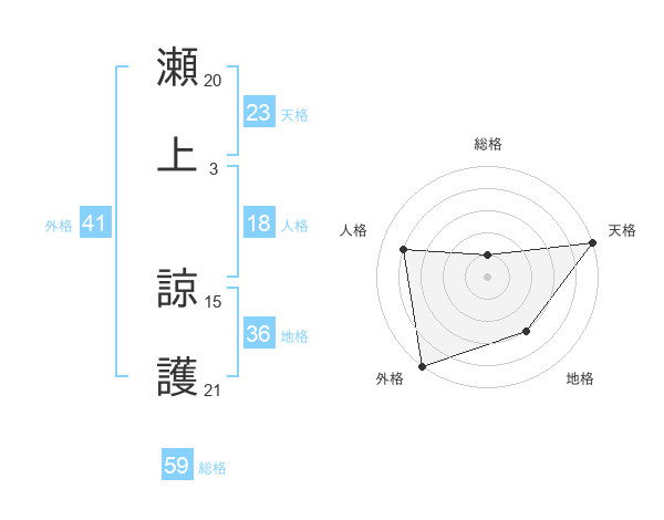 瀬上 諒護さんの総格は59画の1点!
