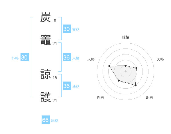 炭竈 諒護さんの総格は66画の1点!