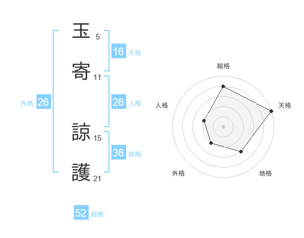 玉寄 諒護さんの総格は52画の4点!