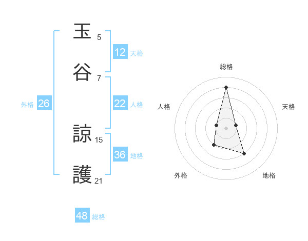 玉谷 諒護さんを姓名の画数から五運を鑑定