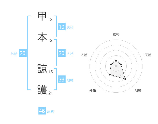 甲本 諒護さんの総格は46画の1点!