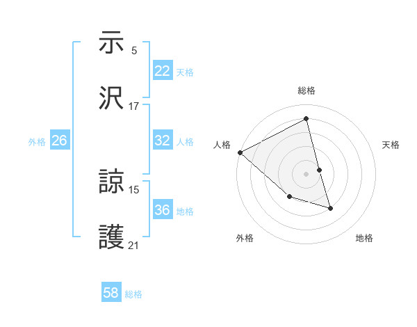 示沢 諒護さんの総格は58画の4点!