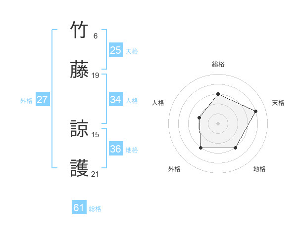 竹藤 諒護さんの総格は61画の3点!