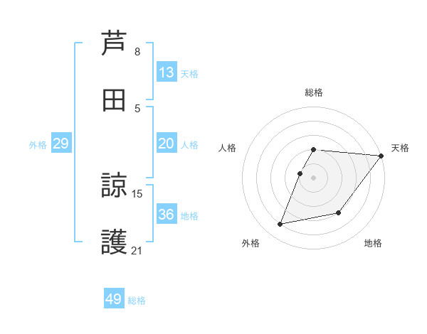 芦田 諒護さんの総格は49画の2点!