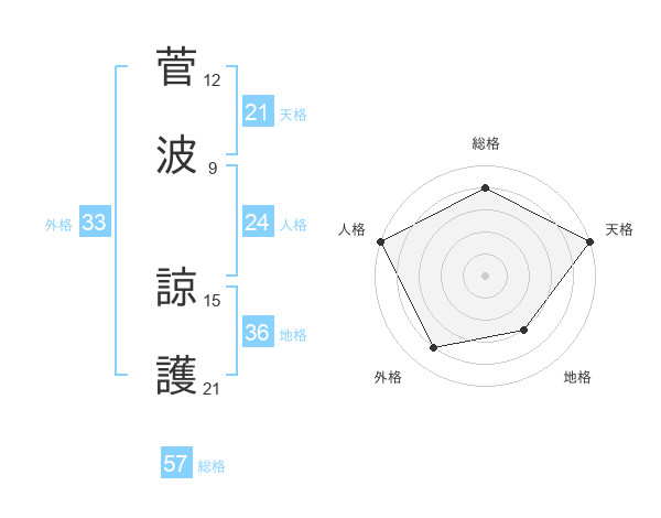 菅波 諒護さんの総格は57画の4点!