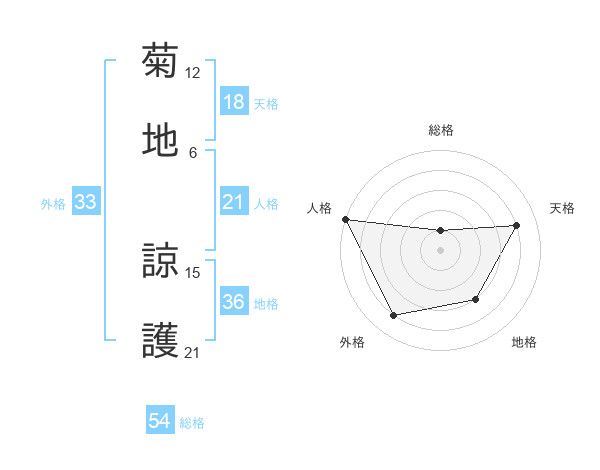 菊地 諒護さんの天格は18画の4点!
