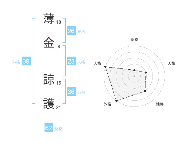 薄金 諒護さんを姓名の画数から五運を鑑定