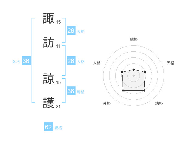 諏訪 諒護さんの天格は26画の2点!