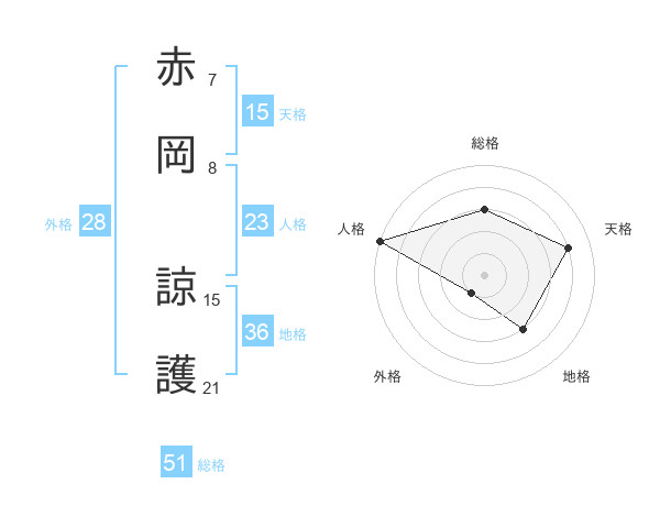 赤岡 諒護さんを姓名の画数から五運を鑑定