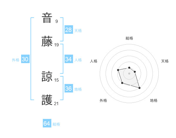 音藤 諒護さんの総格は64画の1点!