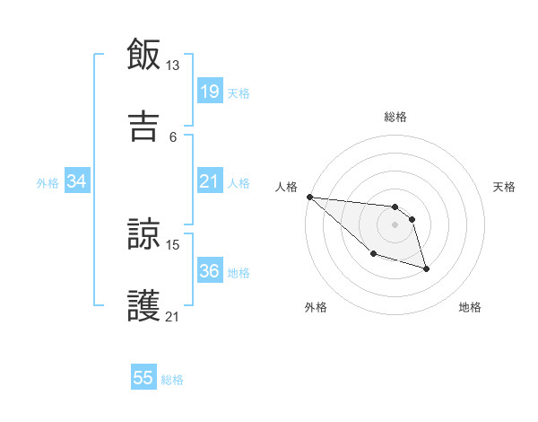 飯吉 諒護さんの総格は55画の1点!