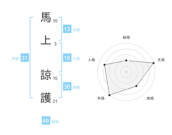 馬上 諒護さんの総格は49画の2点!