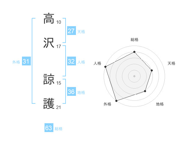 高沢 諒護さんの外格は31画の5点!
