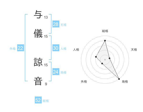 与儀 諒音さんを姓名の画数から五運を鑑定
