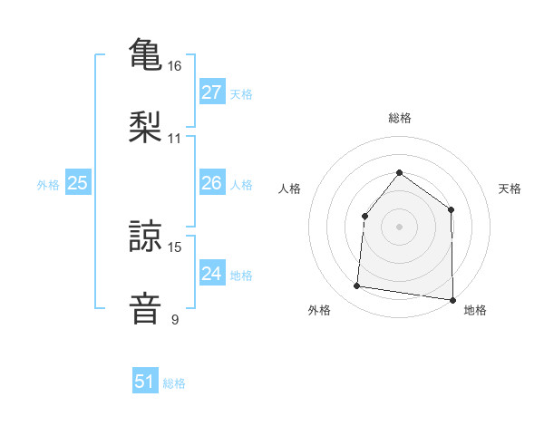亀梨 諒音さんの総格は51画の3点!