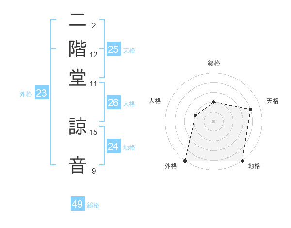 二階堂 諒音さんの総格は49画の2点
