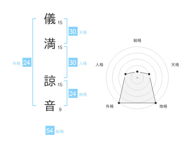 儀満 諒音さんの総格は54画の1点!