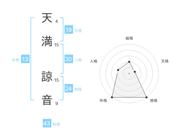 天満 諒音さんの外格は13画の5点!