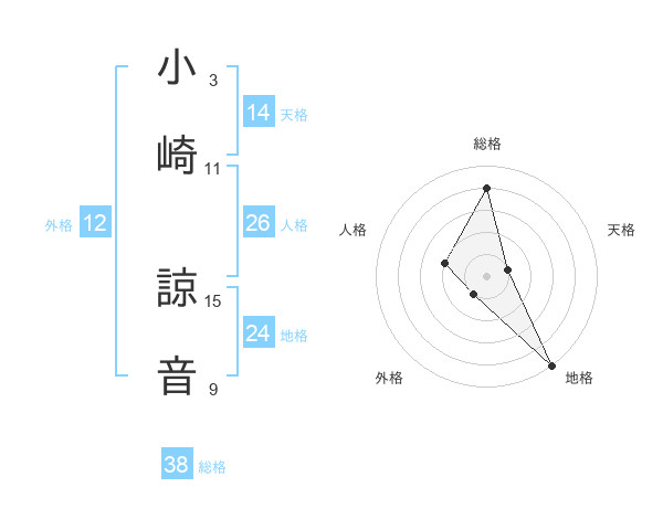 小崎 諒音さんの総格は38画の4点!