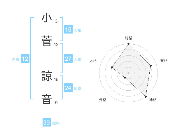 小菅 諒音さんの総格は39画の5点!