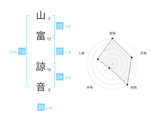 家系が持つ宿命的な運勢を表します。祖先から受け継いだ苗字ですので自分の力が及びません。家柄を象徴します。